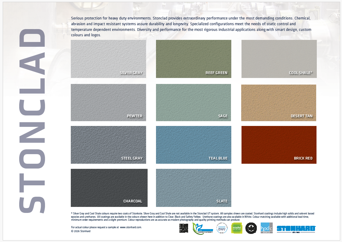 Stonhard n'utilise plus d'oxyde de chrome comme pigment vert dans certains agrégats Stonhard. Cela rend ces produits respectueux de l'environnement.